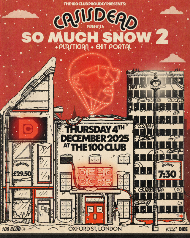 Catch UK rap icon CASISDEAD live at the legendary 100 Club in London on Wednesday, December 4th. Known for his sharp lyricism, masked persona, and cult following, CASISDEAD brings an unmissable night of raw energy and underground anthems to one of the capital’s most historic live music venues.