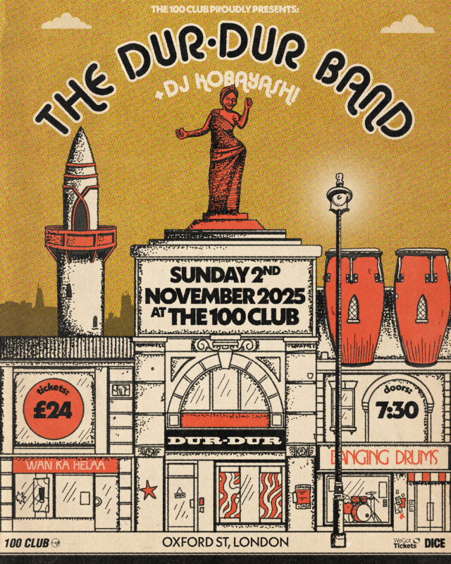Dur-Dur Band, the legendary Somali funk-disco-soul pioneers of 1980s Mogadishu, are coming to our stage this November as part of the 100 Club’s End Of Year Series. Renowned for fusing traditional Somali rhythms with Western funk, soul, and disco, their music defined Somalia’s Golden Age. Now reborn and led by Liban Noah, they’ll bring that vibrant legacy to the 100 Club for a rare and unforgettable night.