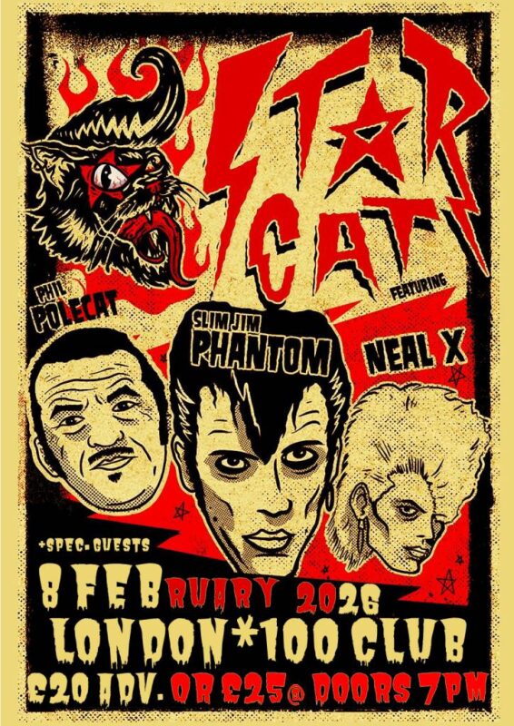 An evening of adrenaline-soaked Rock ‘n’ Roll with STARCAT featuring the legendary Slim Jim Phantom, Phil Polecat and Neal X