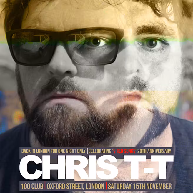 A decade after retiring from touring, the wildly acclaimed folk/punk/psych singer Chris T-T (“genius, a modern-day William Blake” — SUNDAY TIMES, “One of the great underground artists of our time.” — JON SNOW, Channel 4 News) returns for a one-off show, with his band, to celebrate the 20th anniversary of his genre-defining 2005 album ‘9 Red Songs’. Don’t call it a “comeback” — after this, Chris goes right back into hibernation for the foreseeable future.
