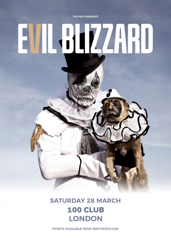 Preston’s Evil Blizzard are truly an enigma. A mystery. A baffling conundrum. Three bass players, a guitarist, a singing drummer, an array of rubber masks that will give both children and adults sleepless nights for days on end, laying there, sweating, convulsing – they are the most ingenious and charismatic live experience on the music scene today. Evil Blizzard delve into many musical genres. From Krautrock to pop to even heavy dub. No genre is safe from their reach. But who are their influences? Who do they appeal to? Filthy Dirty explained in a recent interview. “People with more money than taste, ideally. We seem to have a similar appeal right across any genre; metal, indie, dance, goth, dub; you name it – we can annoy anyone. We could start a new ‘goth/dub’ genre. We’re the kings of Gub.” Opening for such diverse acts as Space, Sleaford Mods, Ruts DC, Gnod, Hawkwind, Killing Joke, Public Image Limited, Bo Ningen and Embrace. Blizzard have not only won over partisan crowds but have gone on to conquer such music festivals as Kendal Calling, Supersonic, Rebellion, The Great British Alternative Music Festival and The International Festival of Psychedelia in Liverpool. With a new album due in Spring 2026, it is time to once again get EVIL.