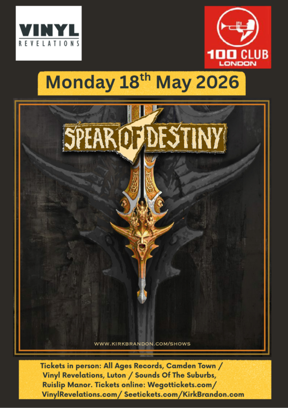SPEAR OF DESTINY were formed in 1983 after the demise of Kirk Brandon’s post-punk iconic rockers THEATRE OF HATE. (Brandon had also, before TOH, been the main man in every punk