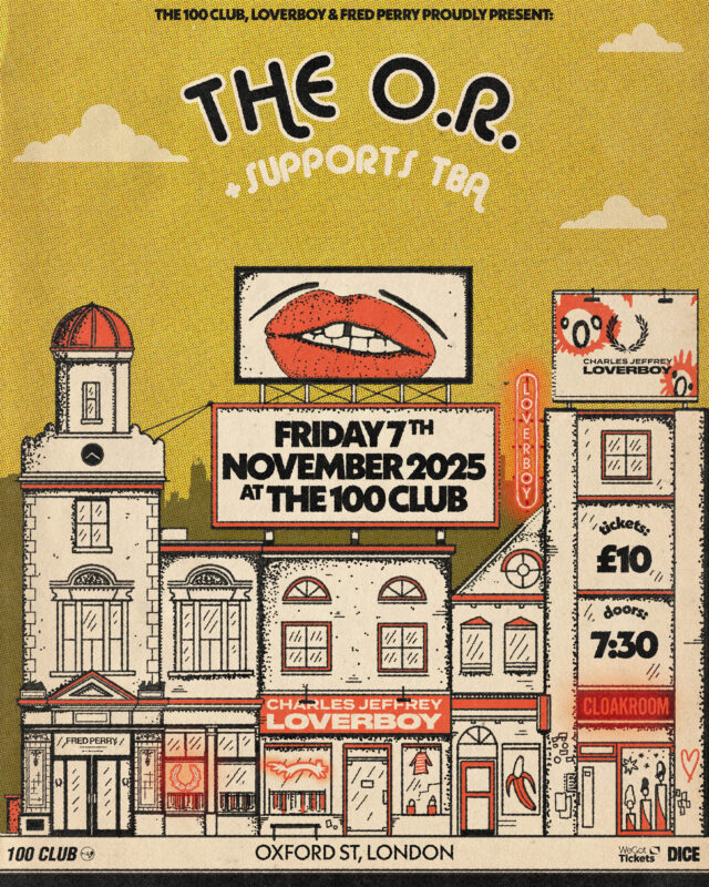 We’re teaming up with our friends Fred Perry and Loverboy to bring a special curated takeover on the first Friday night in our End Of Year Series. Driven by designer Charles Jeffrey, The O.R. come to the 100 Club for a one-off night of guests, performances, dance and more.